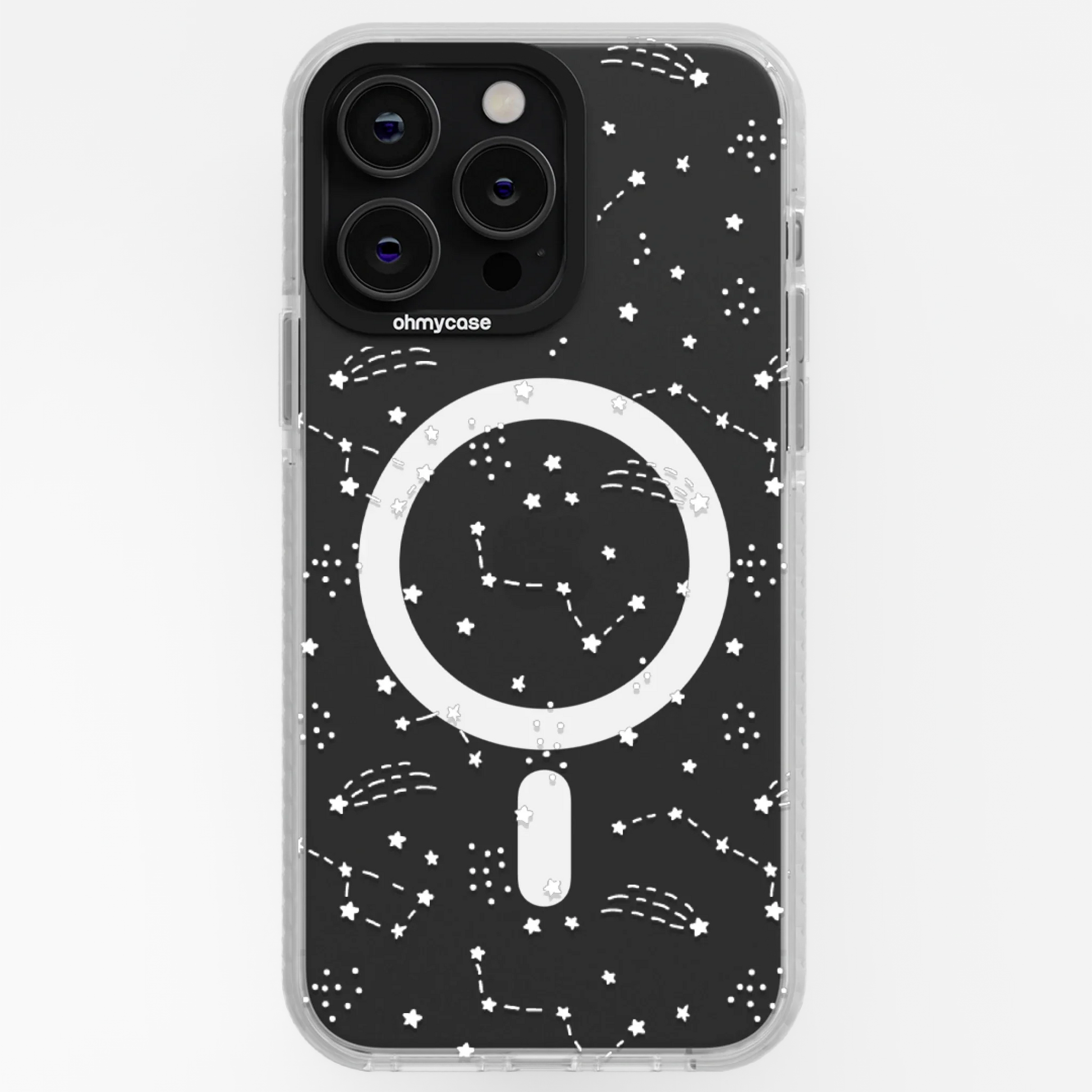 Protégez votre téléphone avec cette coque transparente élégante. Dotée d'un anneau gravé "Ohmycase" autour de l'appareil photo, elle allie style minimaliste et protection maximale tout en étant compatible MagSafe.